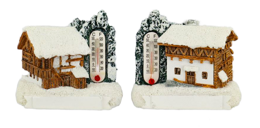Magnet Winter Holzhütte mitThermometer, 2 assortiert