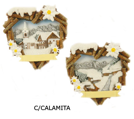 Magnet Winter Holzherze mit Winterlandschaft und Edelweiss, 2 assortiert