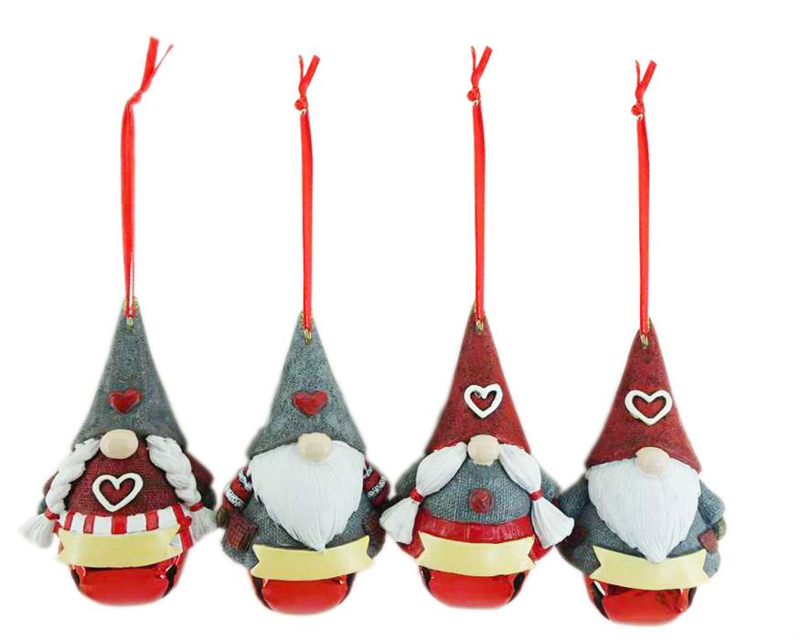 Gnom mit Glocke zum Aufhängen, 4 assortiert