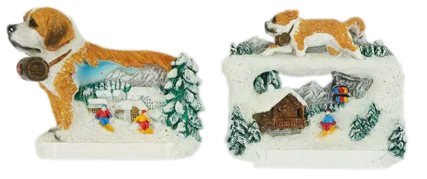 Magnet Winterlandschaft mit Bernhardiner Hund, 2 assortiert
