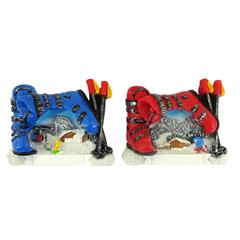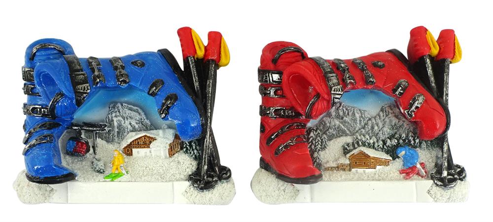 Magnet Winterlandschaft mit Skischuhe blau/rot, 2 assortiert