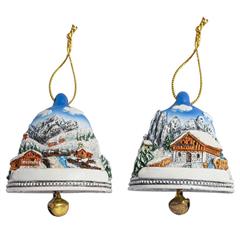 Magnet Winterlandschaft mit Glocke und Almhäuser, 2 assortiert
