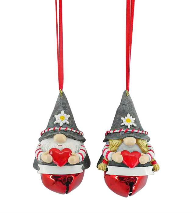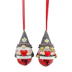 Gnom mit Herz und Glocke zum Aufhängen, 2 assortiert