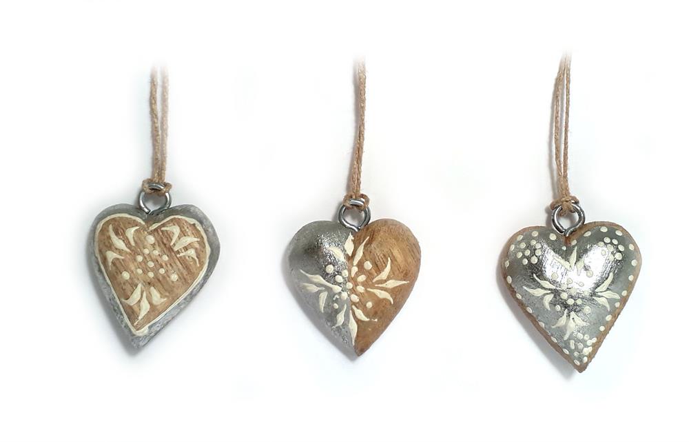 Holz Herz silber klein, 3 x 2cm, 3 assortiert - 24 Stk im DisplayDaten