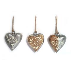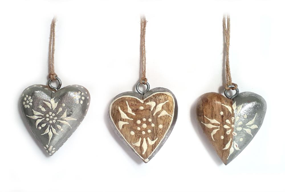 Holz Herz silber mittel, 4 x 2.5cm, 3 assortiert - 24 Stück im DisplayDaten