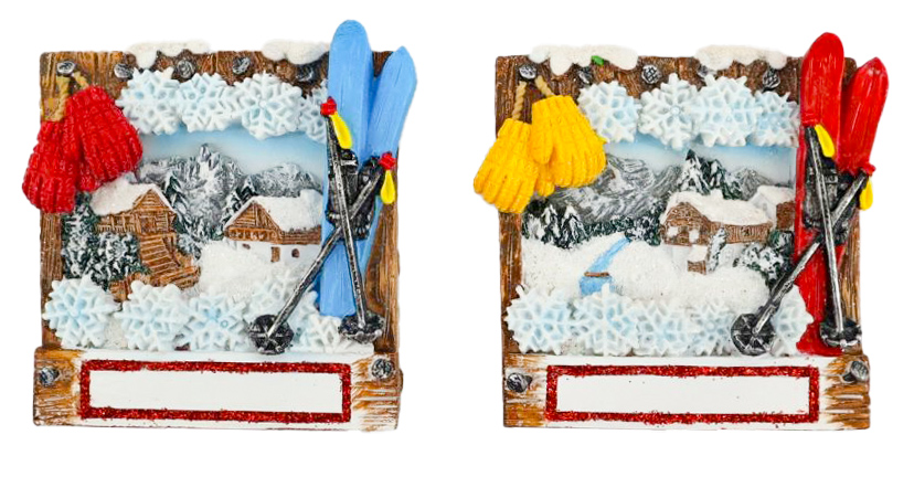 Magnet Winterlandschaft mit Ski u Handschuhe, 2 assortiert