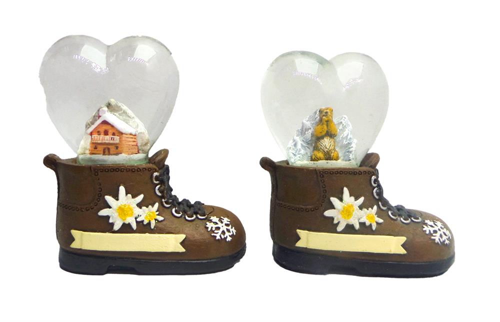 Schneekugel Herz mit Chalet und Murmeltier, 4.5cm, 2 assortiert