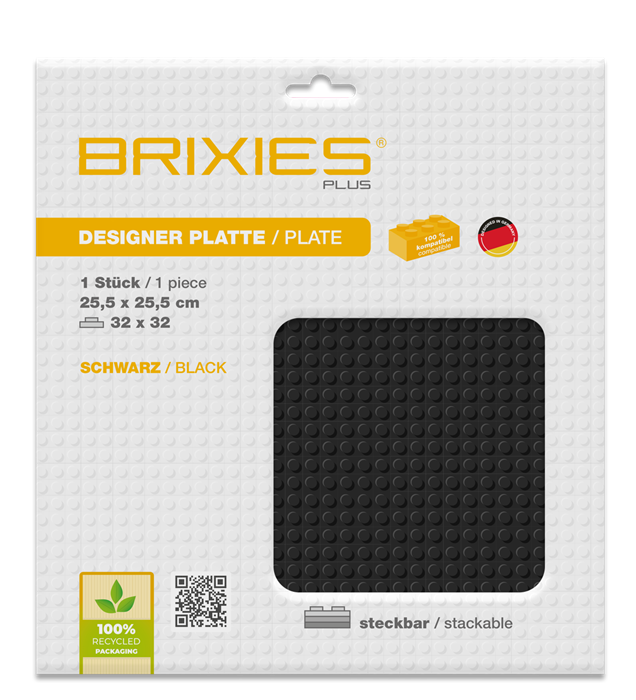 Brixies PLUS Bauplatte Basic schwarz, 25.5 x 25.5 cm