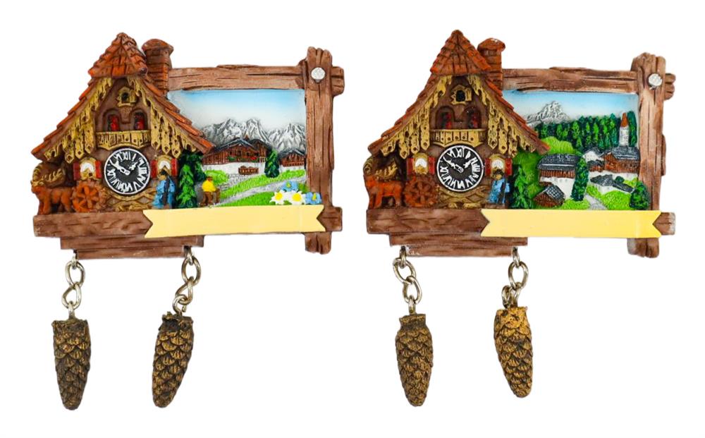 Magnet Sommer mit Kuckucksuhr, 10x7.5cm, 2 assortiert