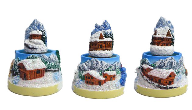 Schneekugel Winter Berg Chalet, 4.5cm, 3 assortiert