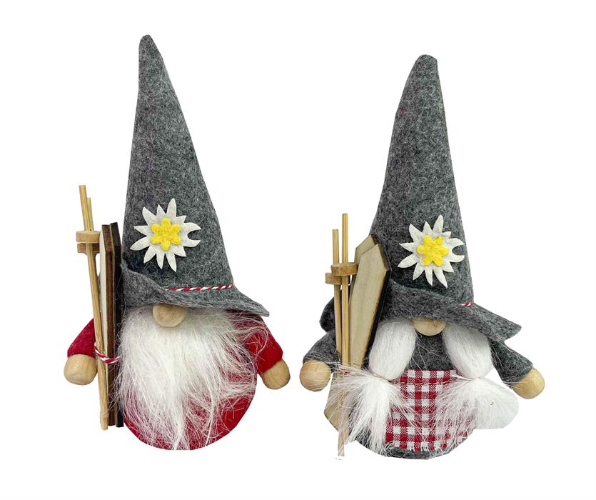 Gnom grau/rot mit Ski und Edelweiss, 2 assortier