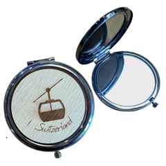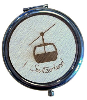 Taschenspiegel mit Holzdeckel, mit Ortnamen Gravur Switzerland und Gondel