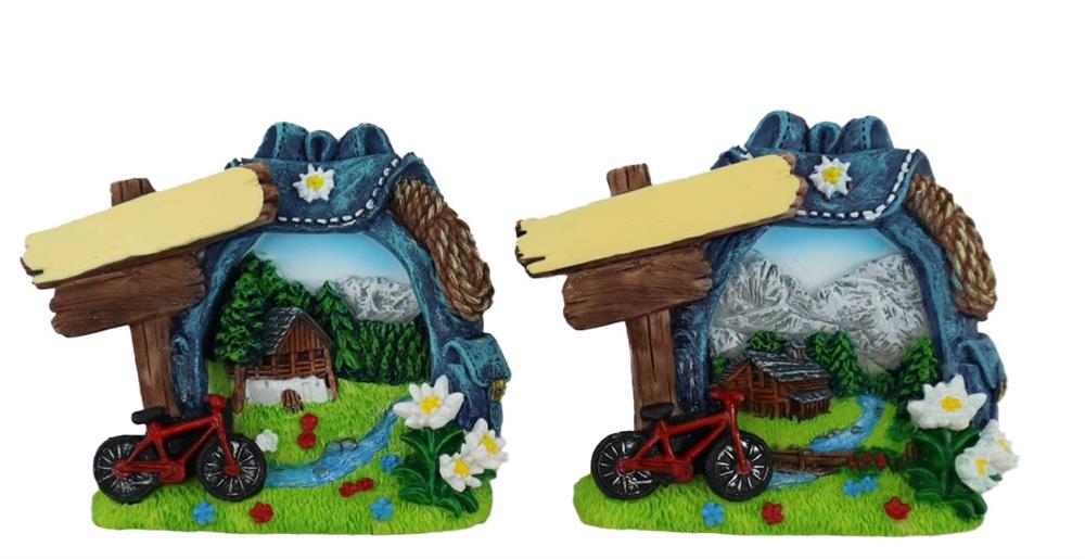 Magnet Sommerlandschaft mit Wanderrucksack und Velo, 2 assortiert