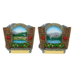 Magnet Sommer Fenster mit Berg und Talausblick, 2 assortiert