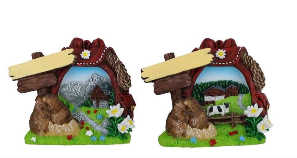 Magnet Sommer Wanderrucksack mit Murmeltier und Edelweiss, 2 assortiert