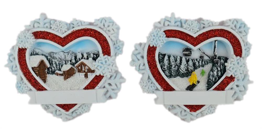 Magnet Winterlandschaft Schneeherz mit Glitzer, 2 assortiert