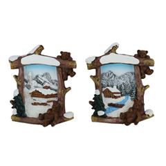 Magnet Winter Holzrahmen mit Schneehütte, 2 assortiert