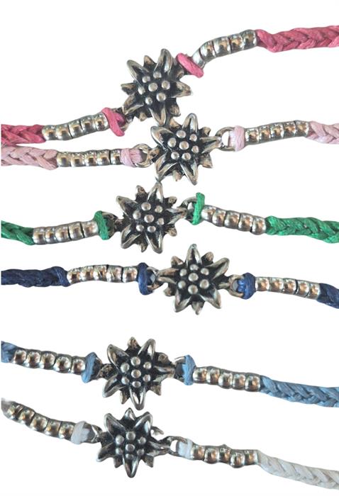 Armband einfarbig mit Edelweiss und feinen Perlen in silber glanz, div. Farben