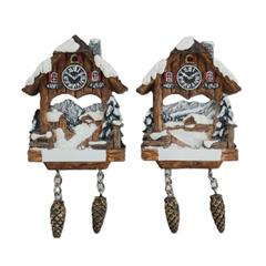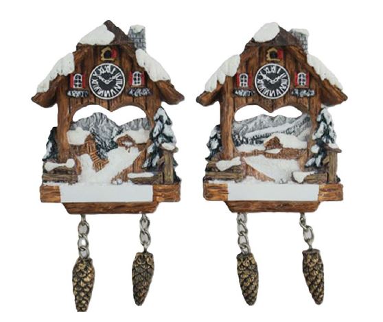 Magnet Winter Kuckucksuhr mit Tannenzapfen, 2 assortiert
