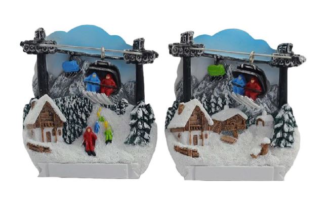 Magnet Winterlandschaft mit Almhäuser und Gondeln, 2 assortiert