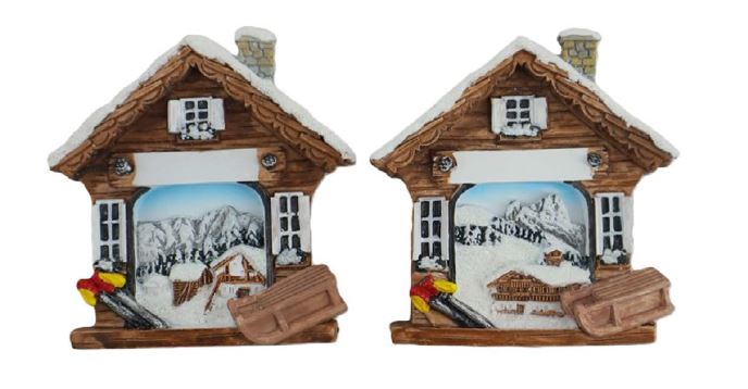Magnet Winter Berghütte mit Schlitten, 2 assortiert