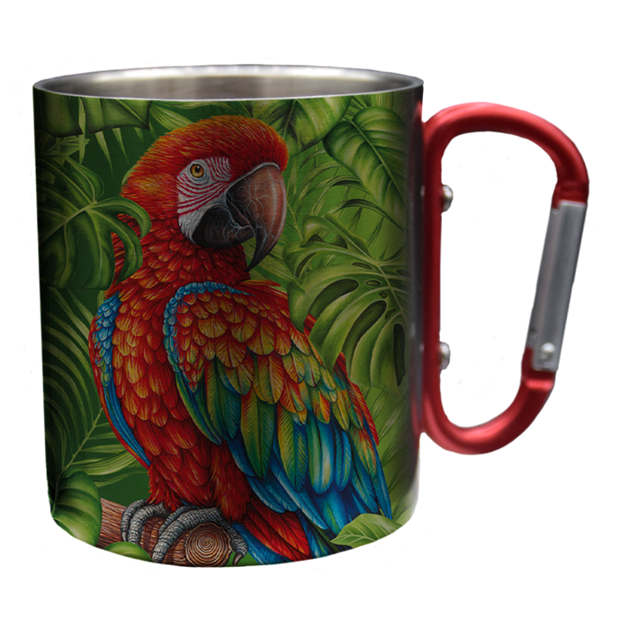 Thermo Edelstahltasse mit praktischem Karabiner in rot