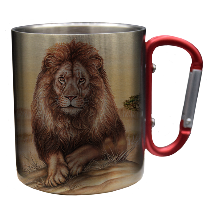 Thermo Edelstahltasse mit praktischem Karabiner in rot