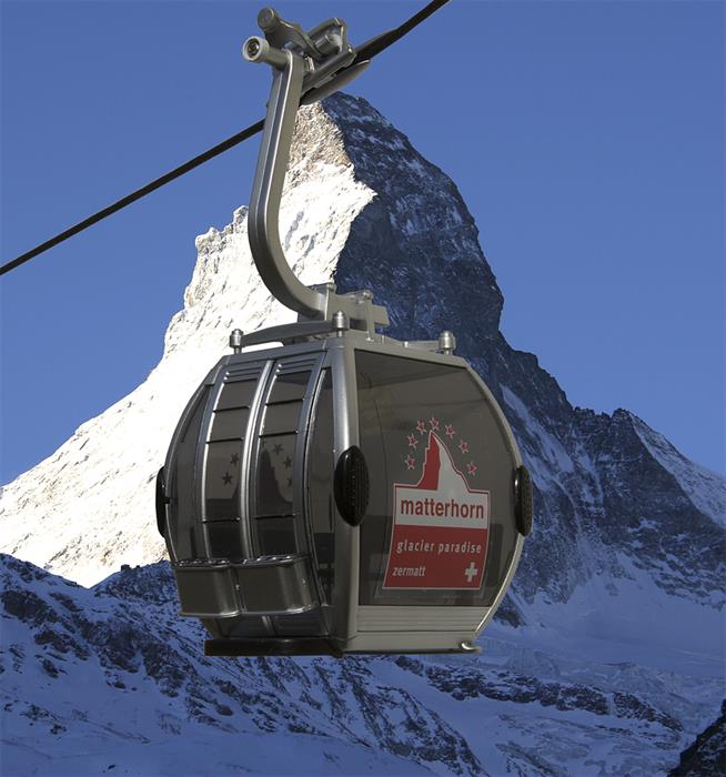 Omega IV Gondel für 8 Personen in Siber mit Logo Zermatt,