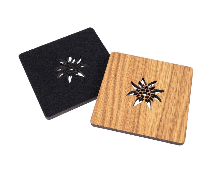 Eichenholz-Untersetzer FSC® mit Filzrücken und Edelweiss-Ausschnitt