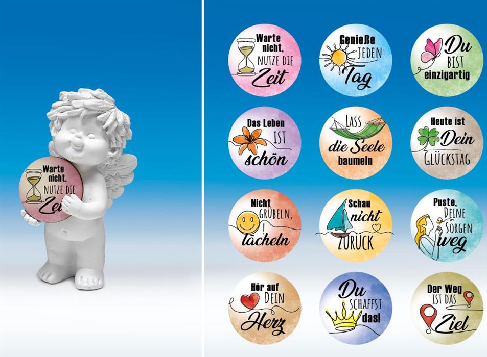 Poly-Engel ''Igor'' mit 12 Holz-Talern weiss-coloriert H12cm