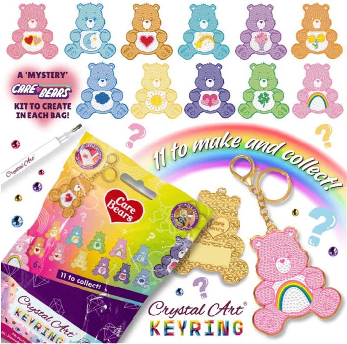 NSammle und gestalte 11 verschiedene Care Bears Crystal Art® Schlüsselanhänger.