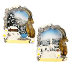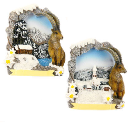 Magnet Winterlandschaft mit Steinrahmen und Steinbock, 2 assortiert