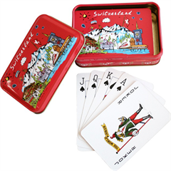 Spielkartenbox Metall mit CH Motiv mit Kartenspiel und 2 Joker