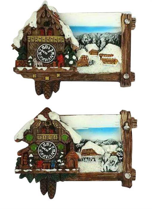 Magnet Winter Kuckucksuhr und Almhäuser, 2 assortiert