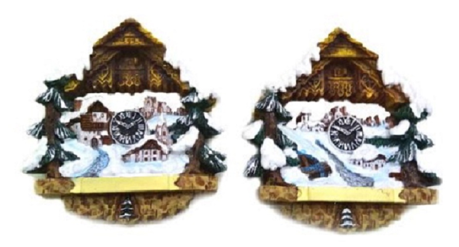 Magnet Winter Kuckucksuhr mit Almhaus, 2 assortiert