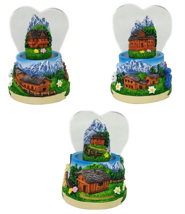 Schneekugel Berge, die "Kugel" hat eine Herzform und ist mit einer Sommerlandschaft verziert, 3 assortiert.