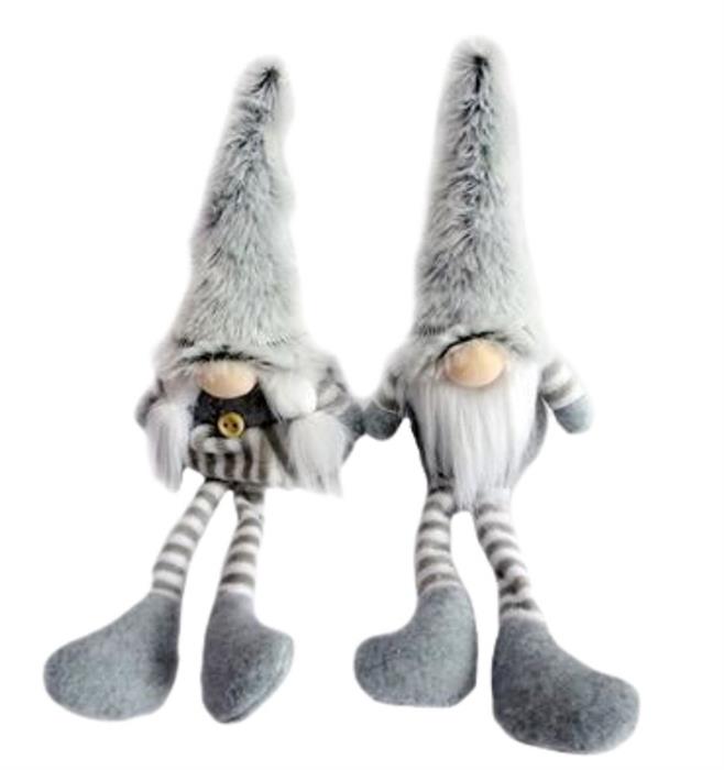 Gnom sitzend mit langen Beinen grau, 2 ass., 26 cm