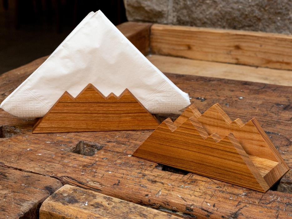 Serviettenhalter „Berge“ aus geöltem europäischem Kirschholz.