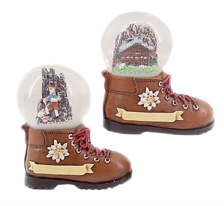 Schneekugel Wanderschuh mit Edelweiss, 4.5cm, 2 assortiert