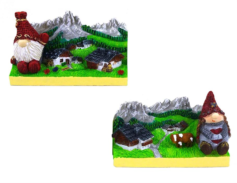 Magnet Sommer Gnom mit Berglandschaft, 2 assortiert