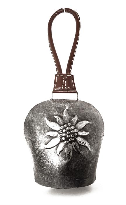 Metallglocke klein mit Edelweiss 11.5 x 11 cm