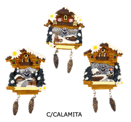 Magnet Winter Kuckucksuhr, 3 assortiert