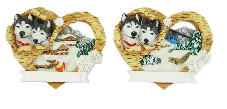 Magnet Herzförmig mit Husky, 2 assortiert