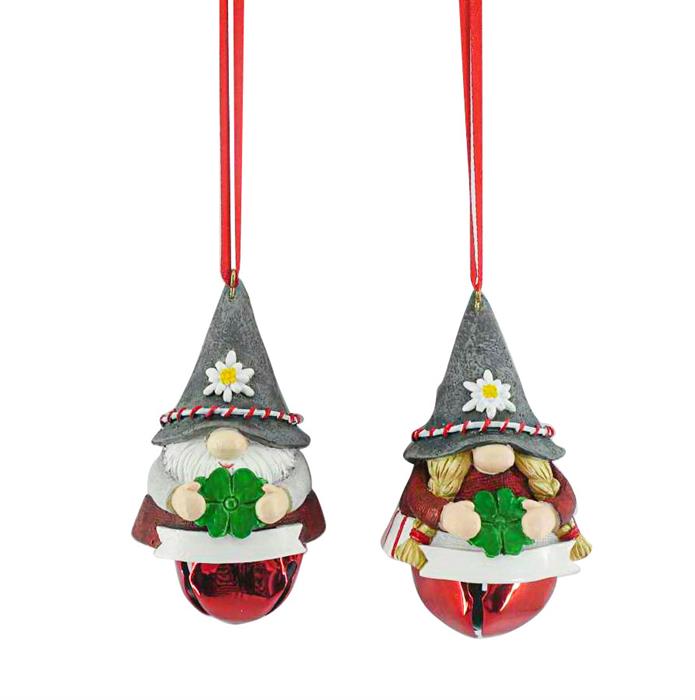 Gnom mit Kleeblatt und Glocke zum Aufhängen, 2 assortiert