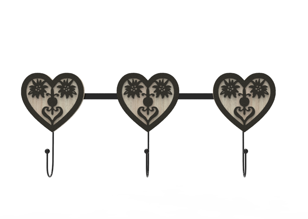 Holz Geschirrtuch Halter drei Herz mit Edelweiss