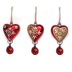 Holz Herz rot mittel mit Glocke rund, 4 x 2.5cm, 3 assortiert - 24 Stück im DisplayDonnées