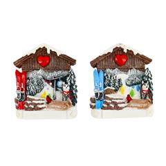 Magnet Winter Hütte mit Husky, Schlitten und Ski, 2 assortiert