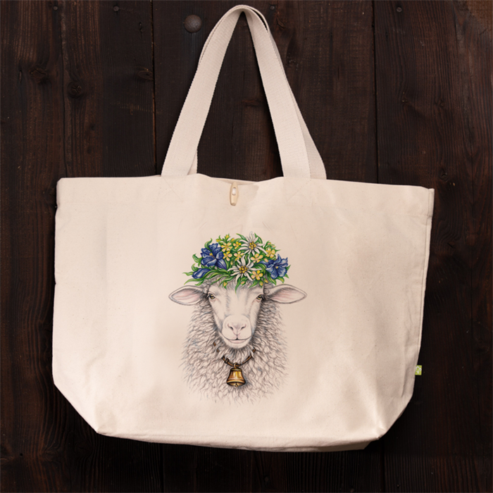 Strandtasche Blumenschaf in weiss, 40 x 39 x 19cm