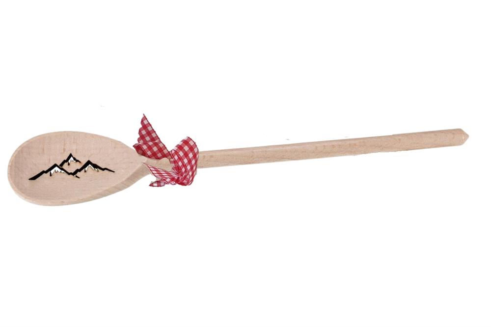 Holz Kochlöffel Buche 30cm mit Schleife rot - Berge