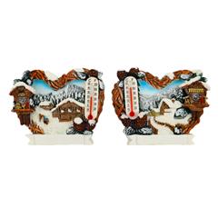 Magnet Winterlandschaft Herzform mit Thermometer, 2 assortiert